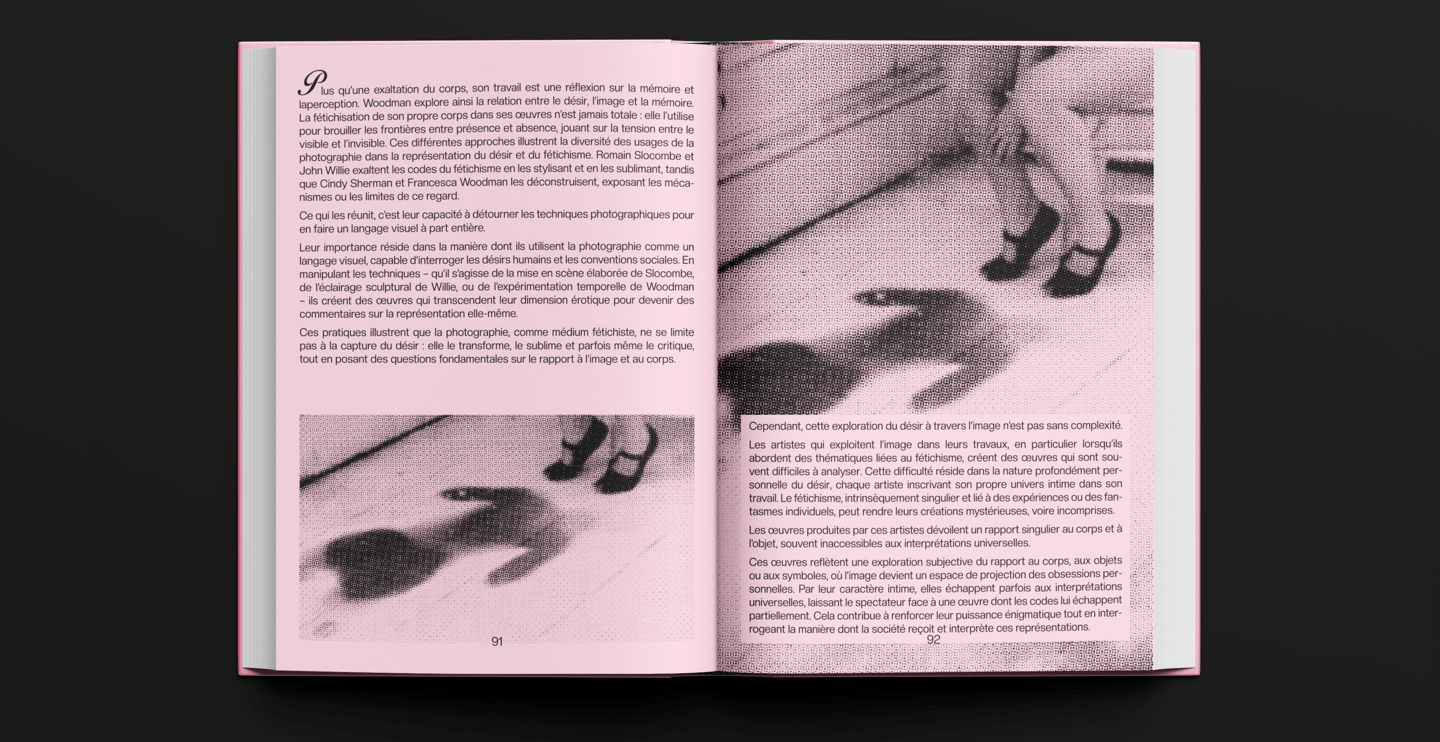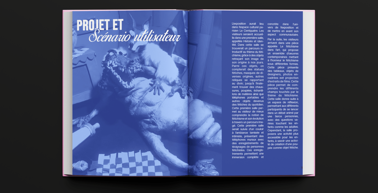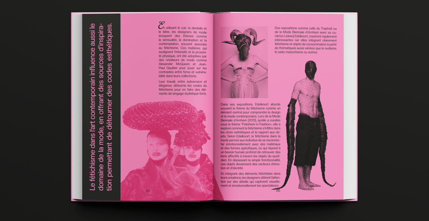 Ce projet présente des extraits de mon mémoire culturel, portant sur le thème du fétichisme. Cet ouvrage que j'ai réalisé interroge sur les origines de ce sujet très tabou et en réalité méconnu du grand public, des problématiques qui y sont liées dans notre société moderne et son évolution dans l'art.
