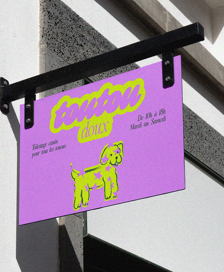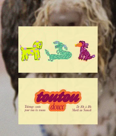Projet fictif d'identité visuelle pour un salon de toilettage canin.